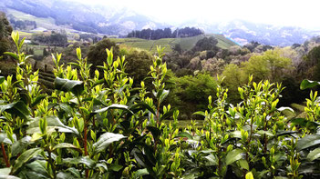 Our tea fields lie on mountain slopes, surrounded by refreshing air, limited sunlight, large temperature